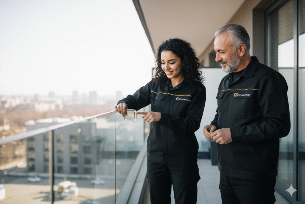 Modern mimarinin zarif çizgilerini öne çıkaran camlı korkuluk dikmeleri, hem güvenlik hem de estetik açıdan mekânlara değer katar.